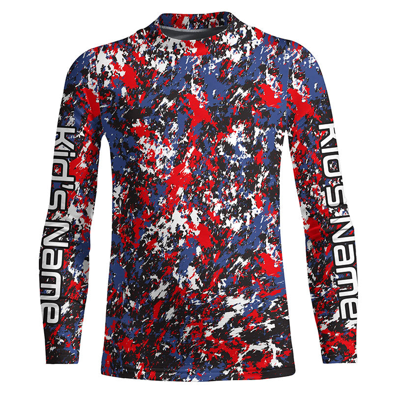Red, White Blue Camo Custom Long Sleeve Performance Fishing Shirts, Patriotic Fishing Jerseys IPHW4215