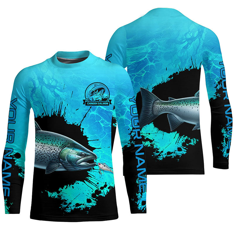 Personalized Chinook Salmon fishing Performance long sleeve Fishing Shirt, Salmon fishing jersey| Blue NQS6922