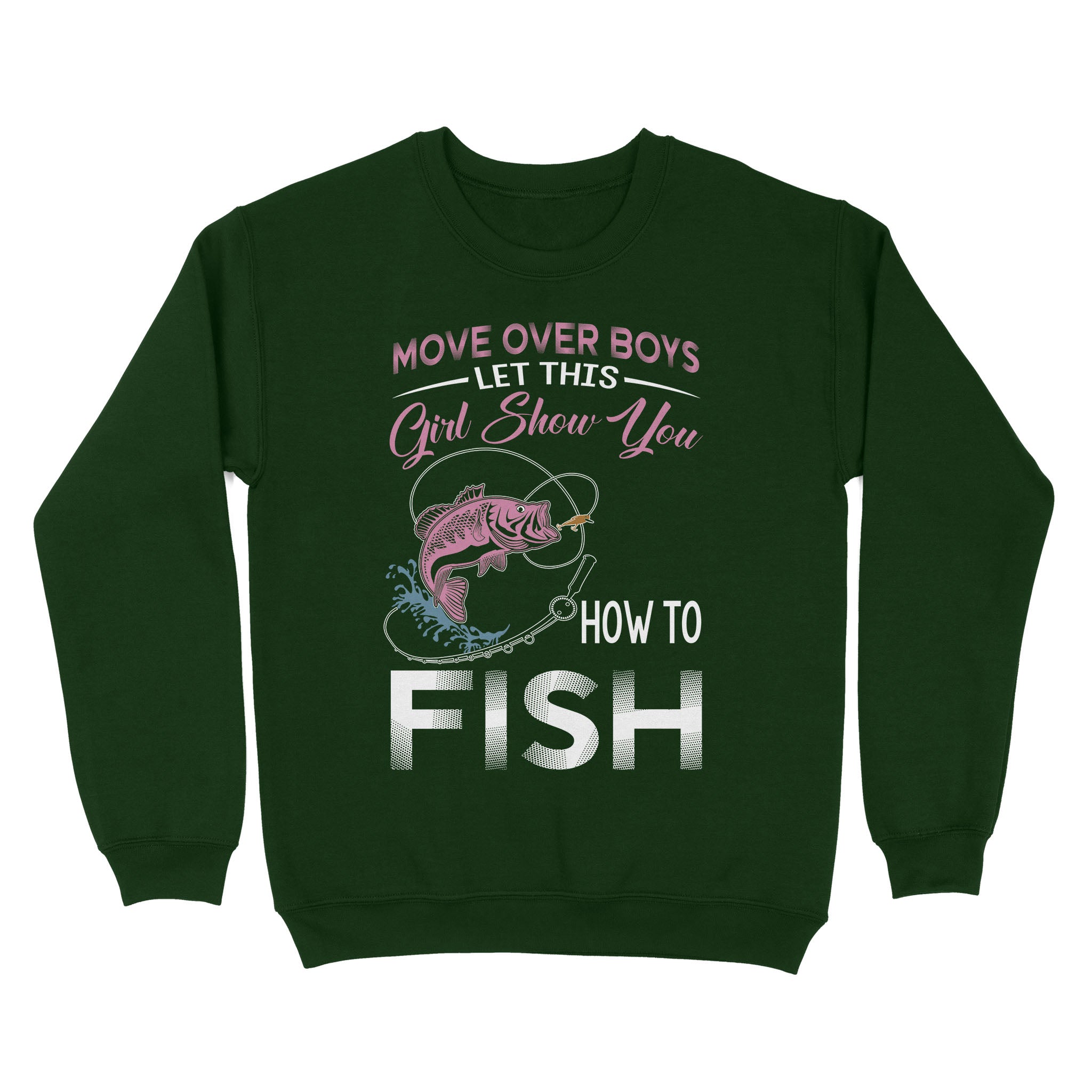 Move over boys let this girl show you how to fish pink women fishing shirts D02 NQS2824 - Standard Crew Neck Sweatshirt