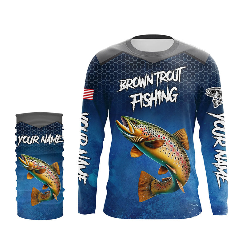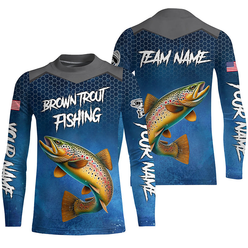 Blue camo Brown trout fishing Custom performance long sleeve team Trout fishing tournament shirts NQS8238