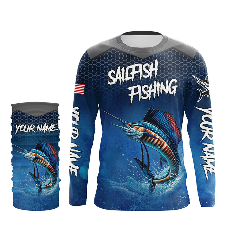 Blue camo Sailfish fishing Custom performance long sleeve team Sailfish fishing tournament shirts NQS7773