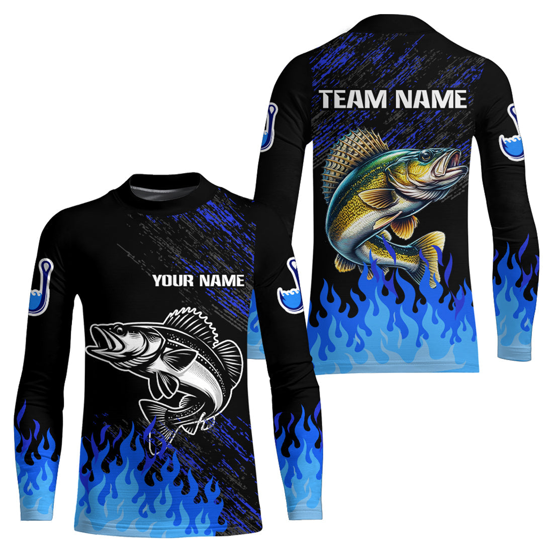 Blue fire Walleye fishing Custom performance long sleeve Walleye fishing tournament shirts for team NQS9085