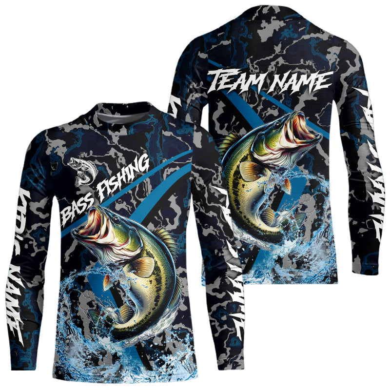 Custom Largemouth Bass Fishing Camo Long Sleeve Fishing Shirts, Personalized Bass Fishing Team Jerseys NQS9677