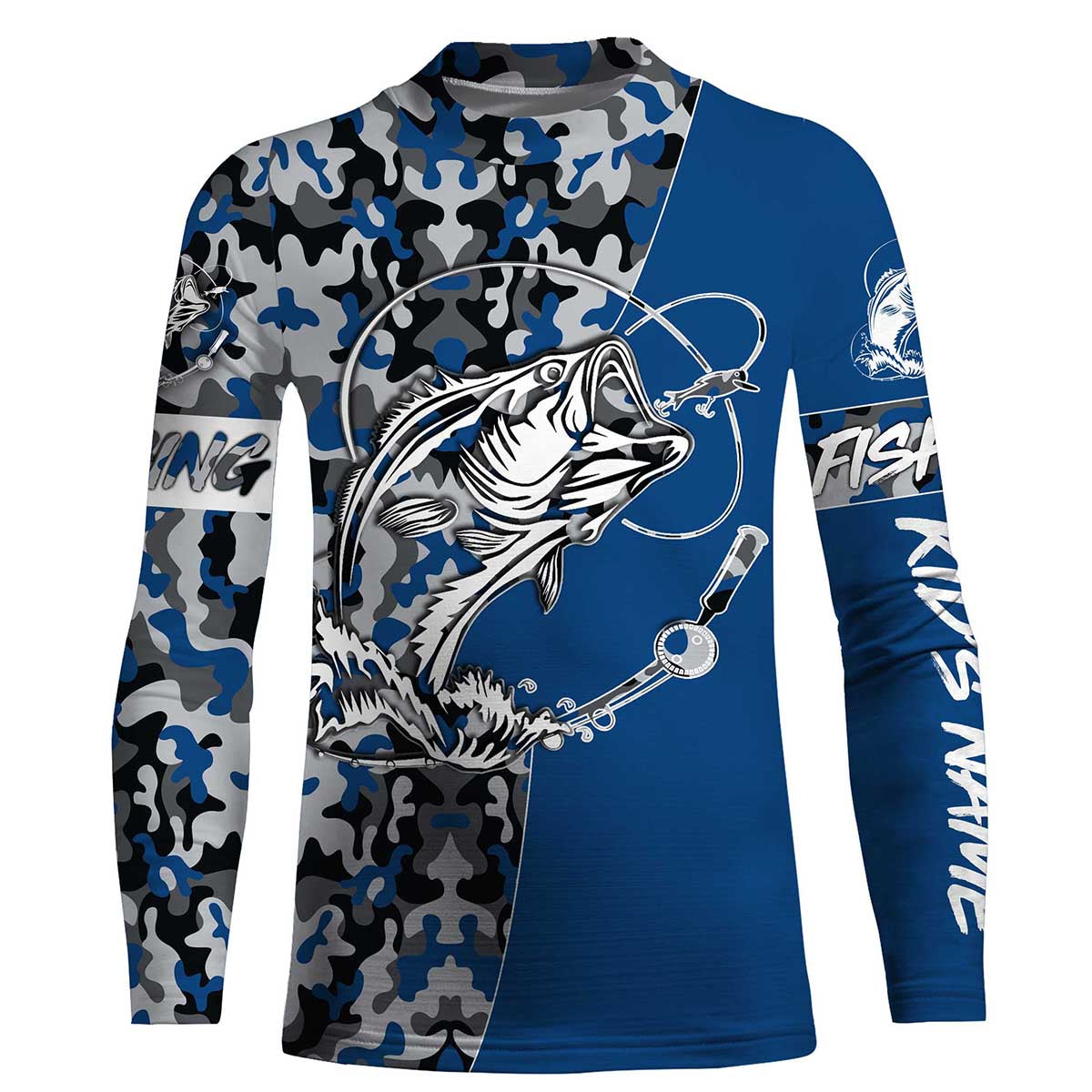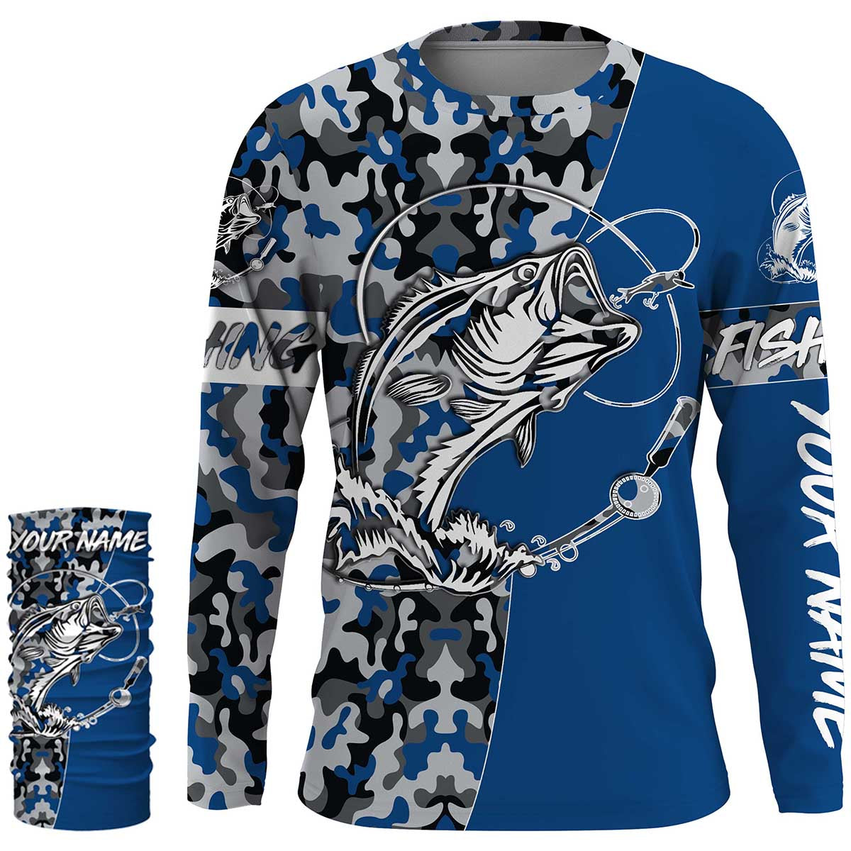 Bass Tattoo camo Blue Bass Fishing Custom Name UV Protection Shirts, Bass Fishing Tournament Clothing - FSD2984