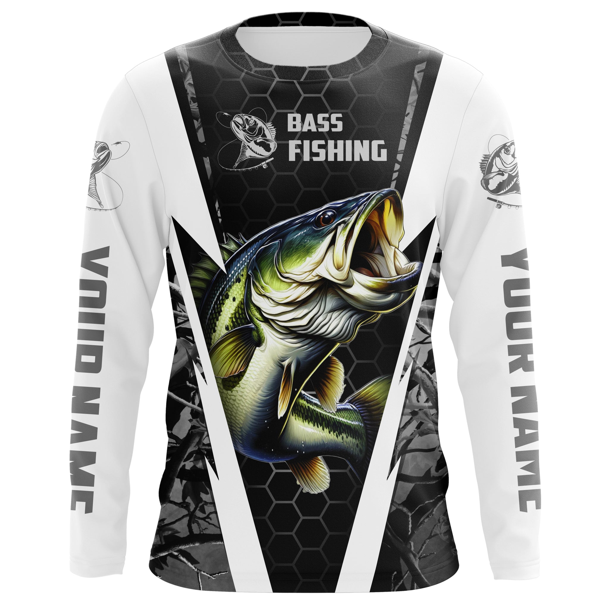 Personalized Bass Fishing jerseys, Bass Fishing Long Sleeve Fishing tournament shirts | gray camo IPHW3679