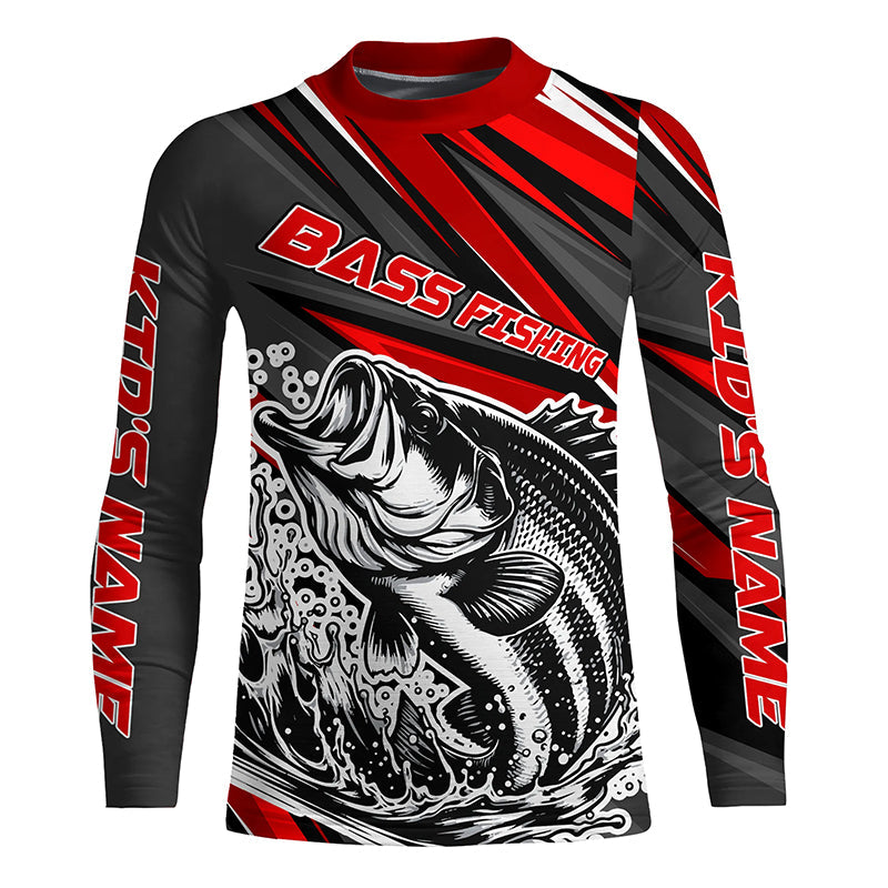 Personalized Bass Fishing Jerseys, Bass Fishing Long Sleeve Tournament Fishing Shirts | Red IPHW5598