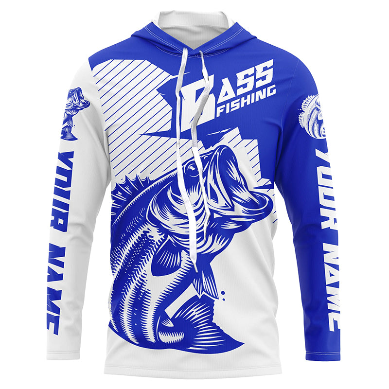 Personalized Bass Fishing Jerseys, Bass Fishing Long Sleeve Fishing Tournament Shirts | Blue IPHW5752