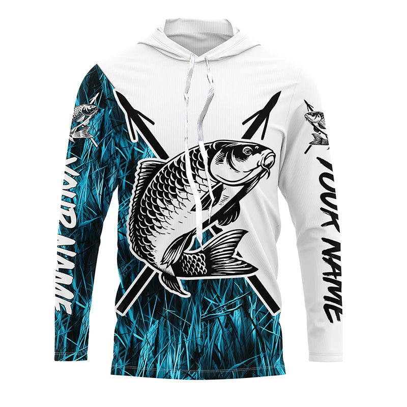 Carp Fish Bowfishing Shirts, Custom Carp Bow Fishing Long Sleeve Tournament Shirts | Blue Camo IPHW6396