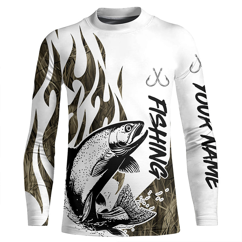 Rainbow Trout Fishing Camo Tattoo Custom Long Sleeve Fishing Shirts, Trout Tournament Fishing Shirt IPHW6542