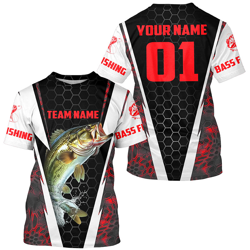 Personalized Bass Fishing Sport Jerseys, Bass Fishing Long Sleeve Tournament Shirts | Red Camo IPHW4576