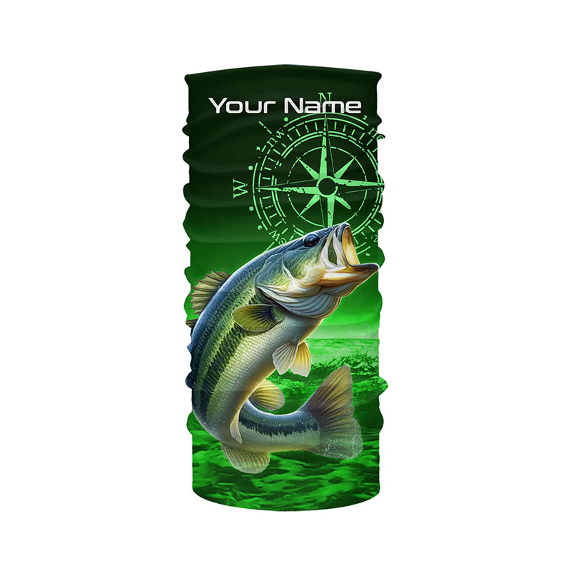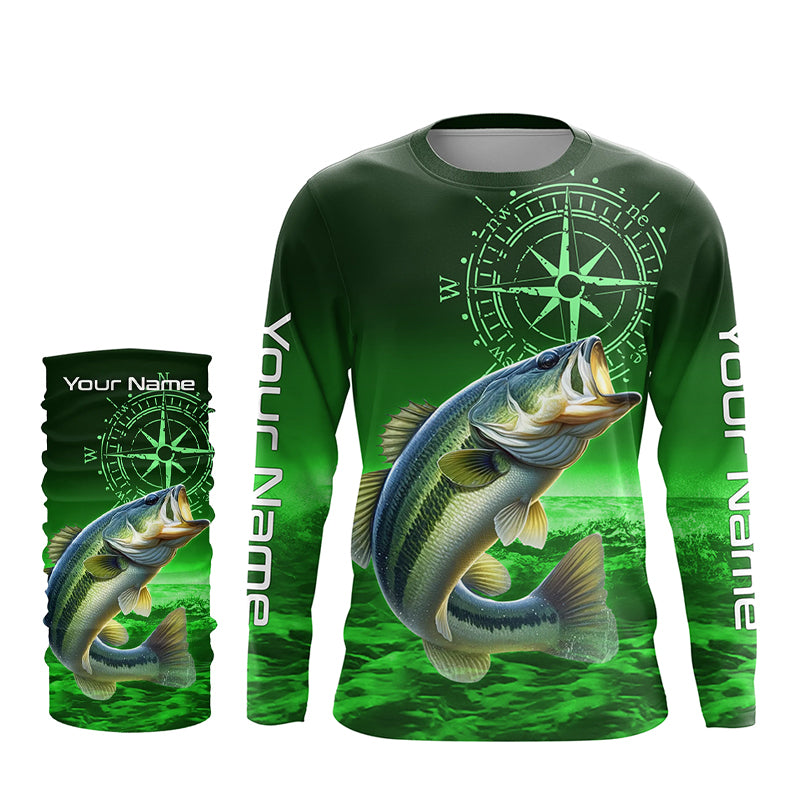 Personalized Bass Green Long Sleeve Performance Fishing Shirts, Bass compass tournament Shirts NQS5881