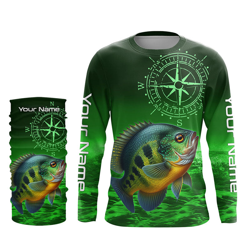 Personalized Bluegill Green Long Sleeve Performance Fishing Shirts, Bluegill compass tournament Shirts NQS6332