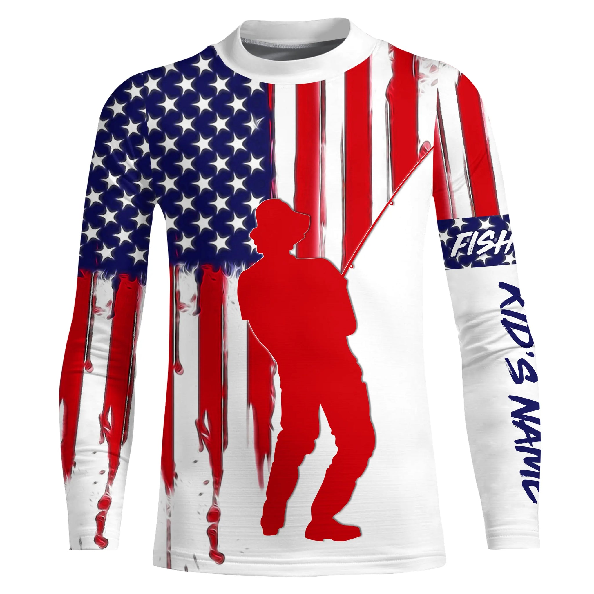 American Flag Fisherman Performance Custom Name Long Sleeves Patriotic Fishing Shirts TTN126