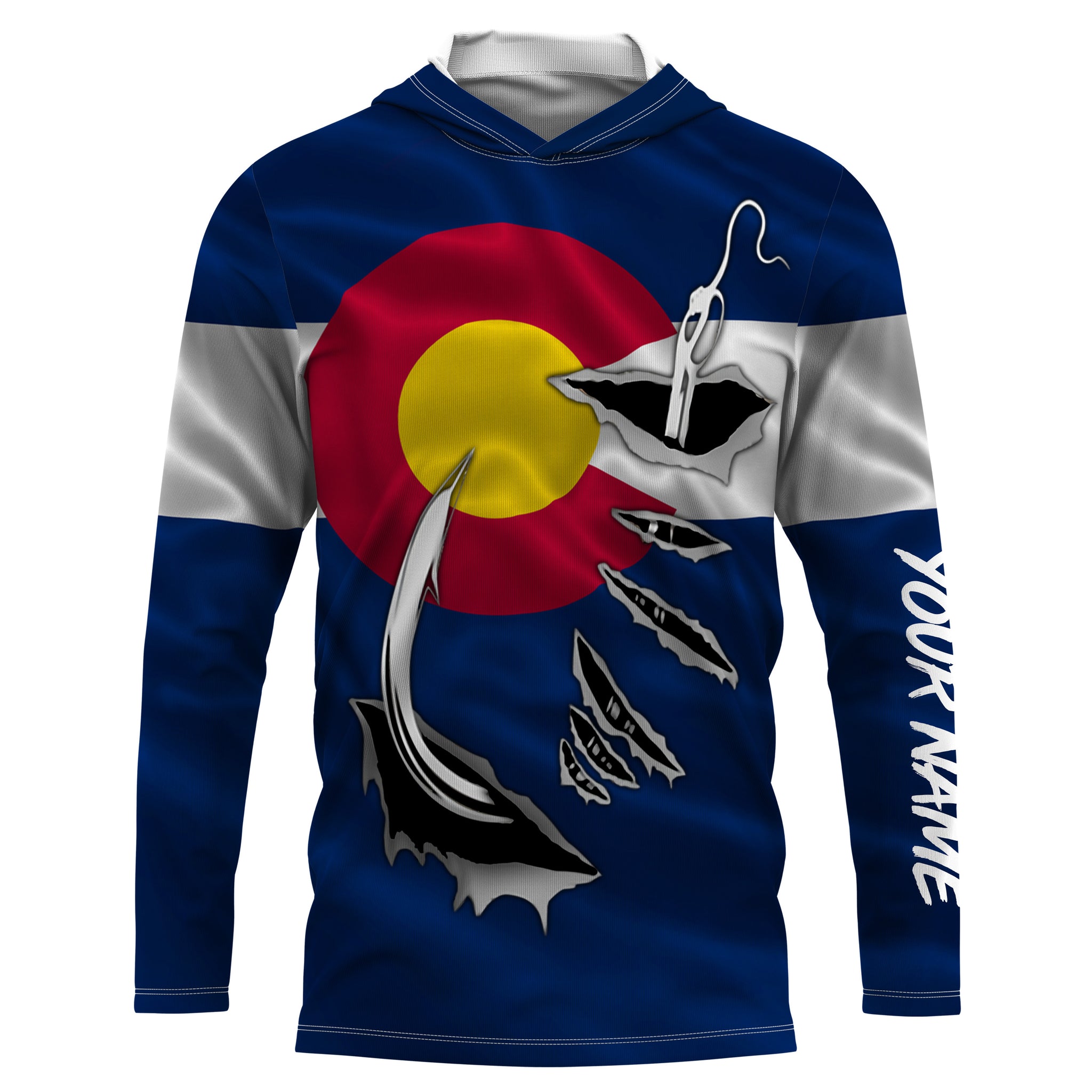 CO Fishing 3D Fish Hook Colorado Flag UV protection quick dry customize name long sleeves shirts personalized fishing apparel gift for Fishing lovers IPHW475