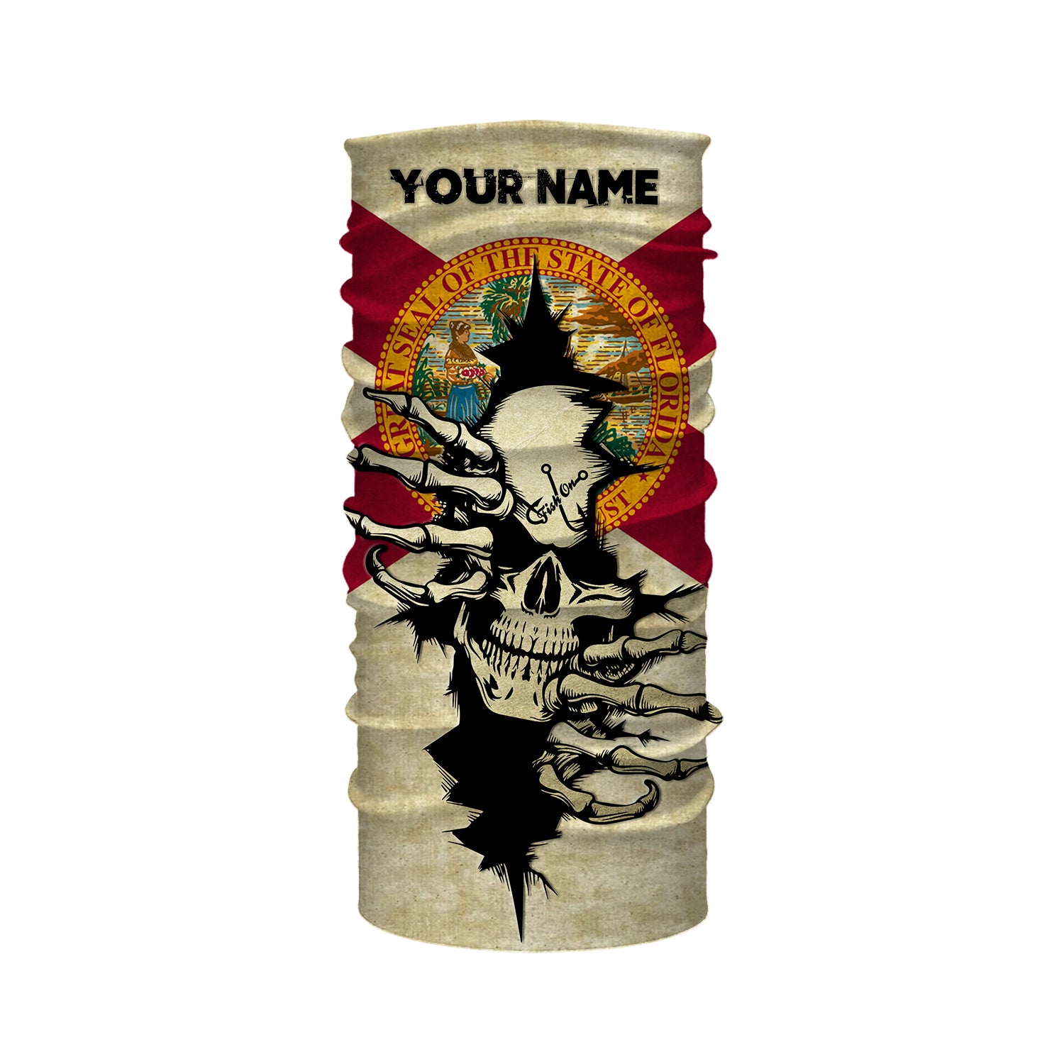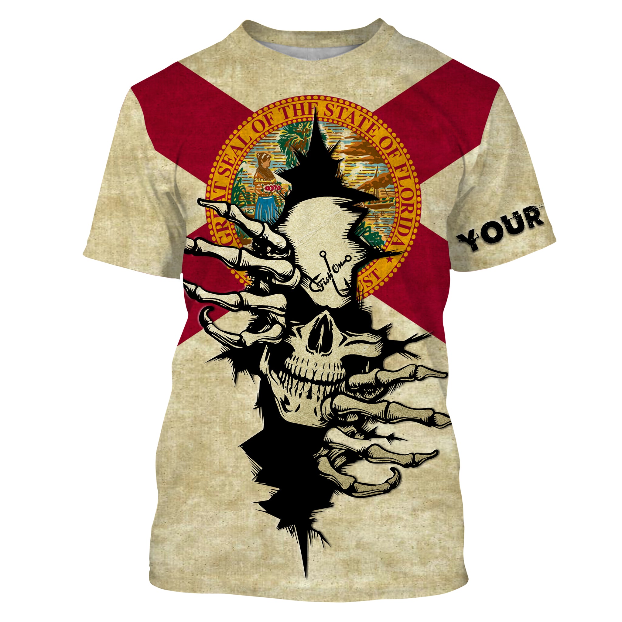 Florida Flag Skull Fish On Custom Long Sleeve Performance Shirts, Personalized Patriotic Fishing Gifts TTN74