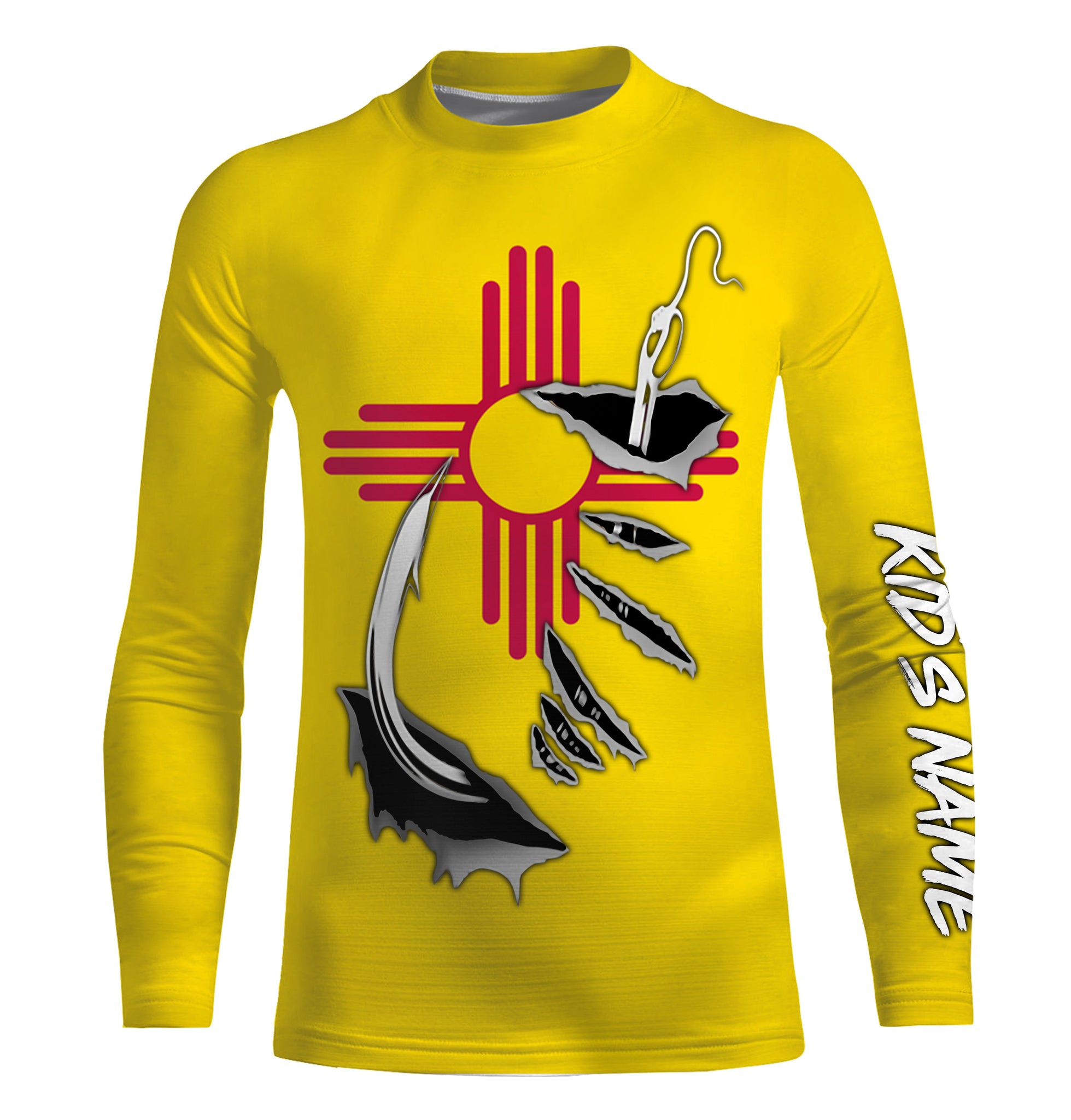 NM Fishing 3D Fish Hook New Mexico Flag UV protection quick dry customize name long sleeves shirts personalized fishing apparel gift for Fishing lovers IPHW472