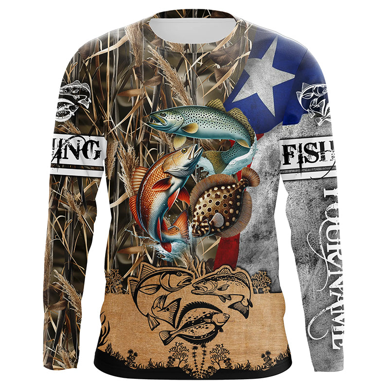 Texas Slam Camo Fishing TX Flag Custom Name Sun Protection Fishing Shirts Personalized Fishing gifts NQS337