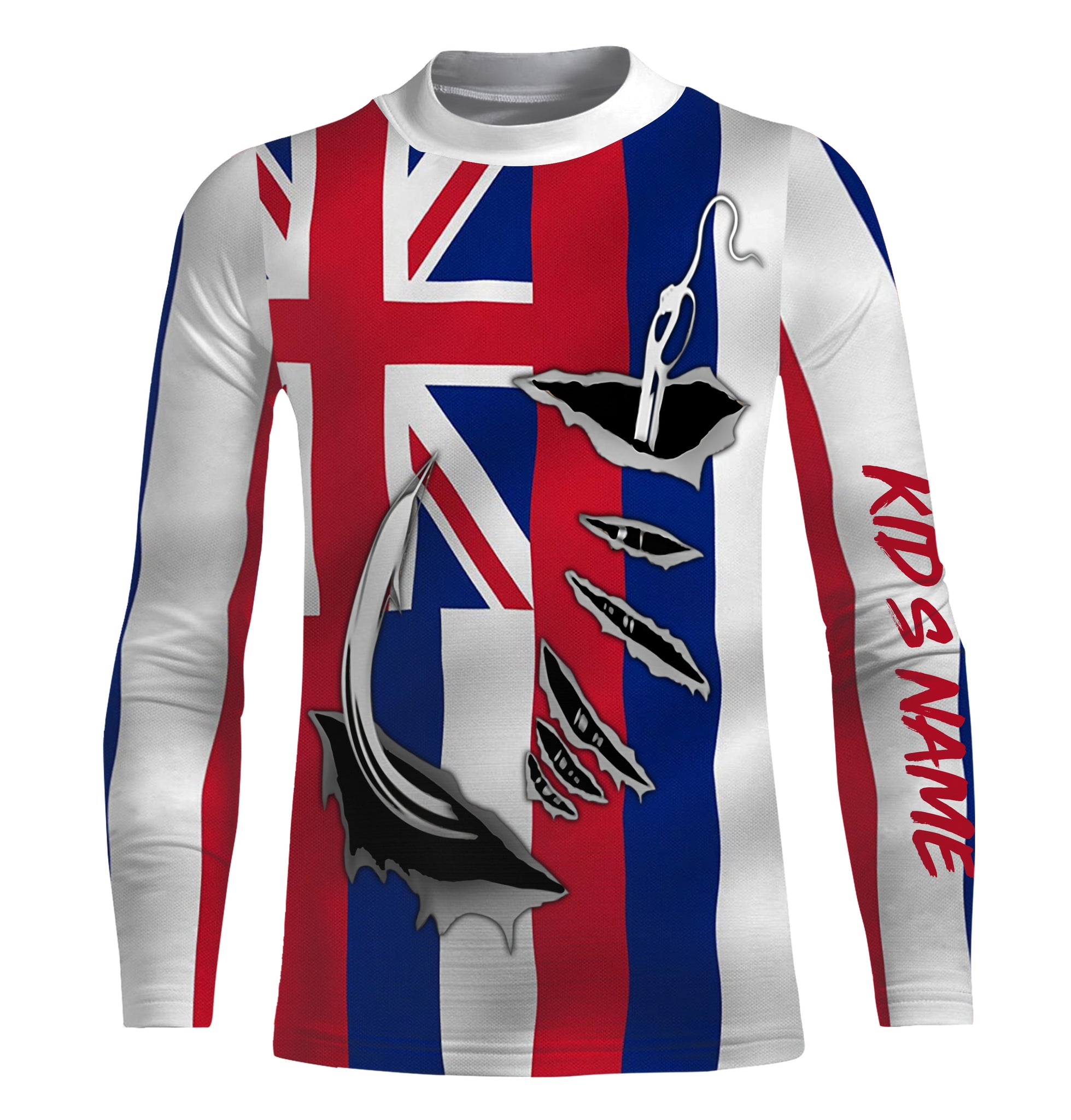 Hawaiian Flag 3D Fish hook Custom Long Sleeve performance Fishing Shirts IPHW471