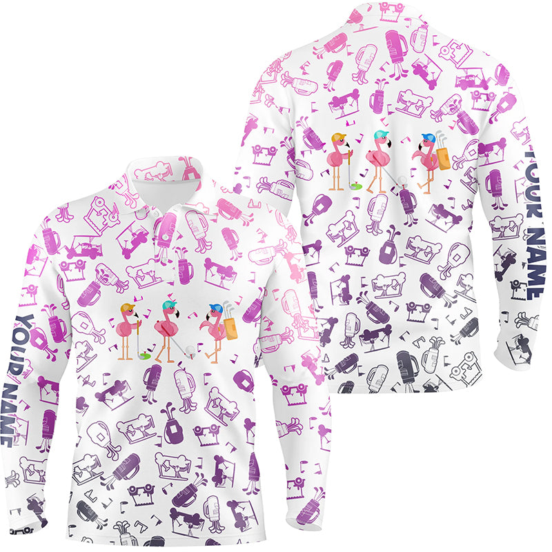 Funny Mens golf polo shirt gradient neon golf icons background custom name Flamingo golf shirts NQS5182