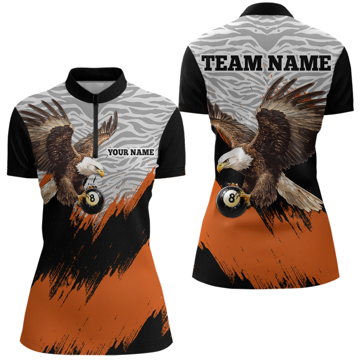 Funny Eagle Personalized Orange Camo Billiard 8 Ball Team Shirts For Women Billiard League Polo & 1/4 Zip Shirt NNT28