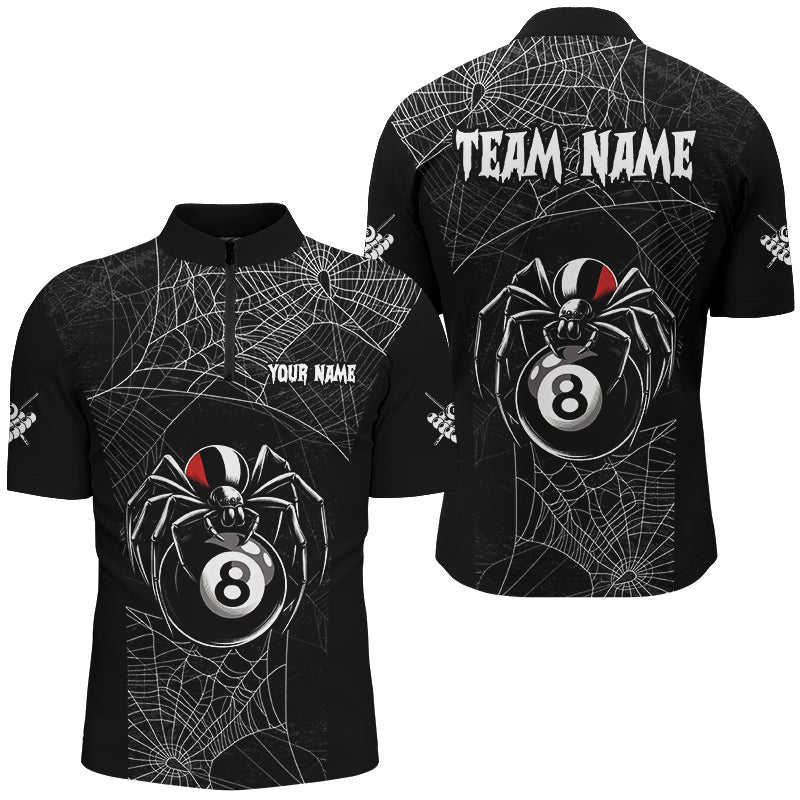 Funny Spider Web 8 Ball Pool Black Billiard Shirts For Men Custom Spider Billiard Halloween Shirts TDM2587