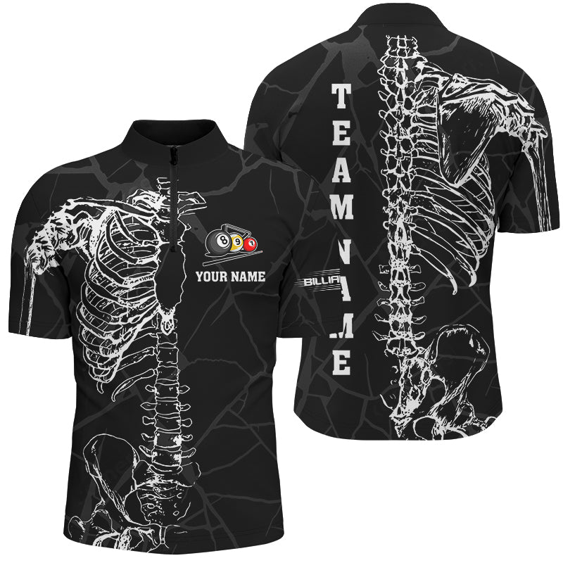 White Skeleton Custom Black Grunge Billiard Shirts For Men, Funny Billiard Jerseys Short Sleeve TDM2723