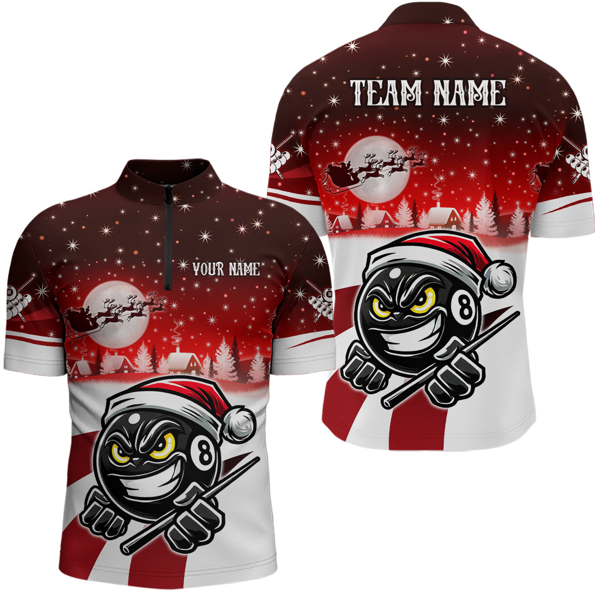 Personalized Red Christmas Funny 8 Ball Pool Billiard Shirts For Men Christmas Billiard Jerseys TDM2925