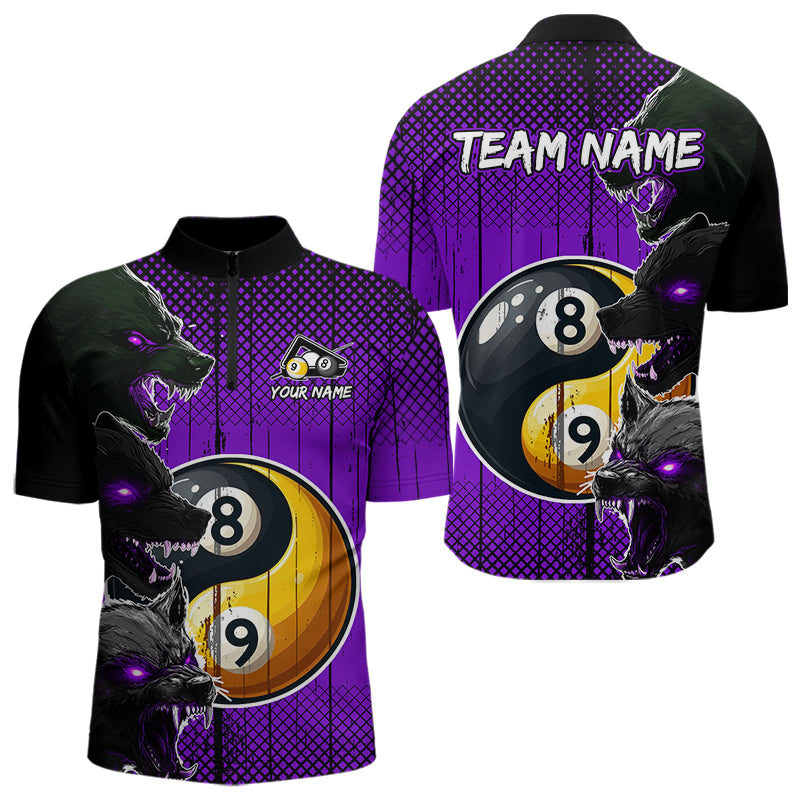 Funny Ying And Yang Eyes Of Wolf Billiard Shirts For Men Custom 8 & 9 Ball Billiard Jerseys |Purple TDM3598
