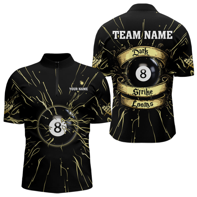 Personalized Dark Strike Looms 8 Ball Billiard Shirts For Men, Funny Billiard Pool Jerseys |Gold TDM3722