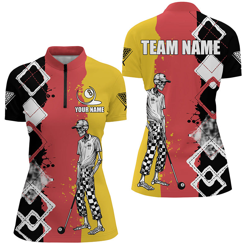Personalized Argyle Funny Skeleton Women Billiard Shirts Custom Colorful Billiard Team Jerseys TDM1616