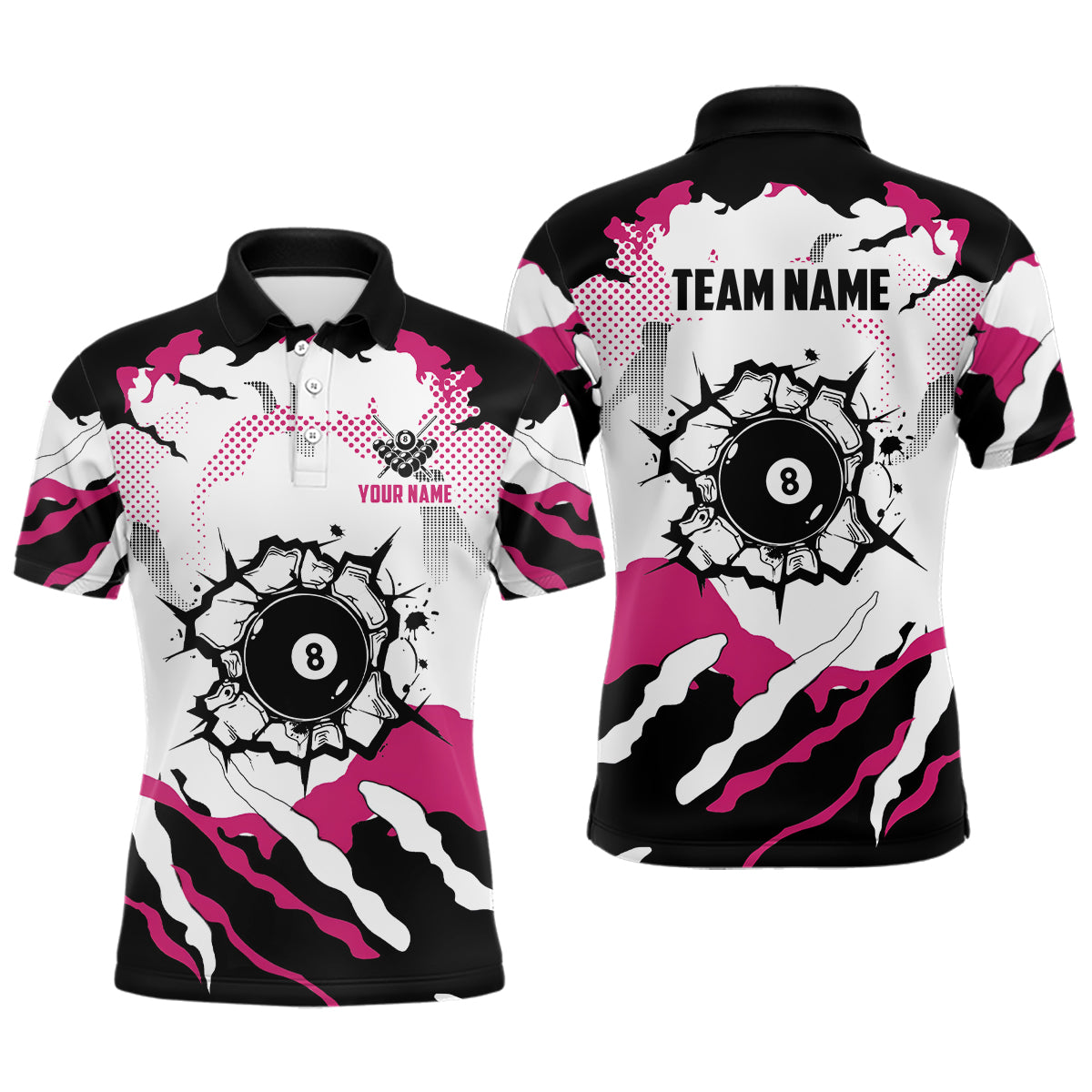 Funny Pink And White Camo 8 Ball Pool Break Custom Men Billiard Shirts, Billiard Jerseys Clothing TDM1834
