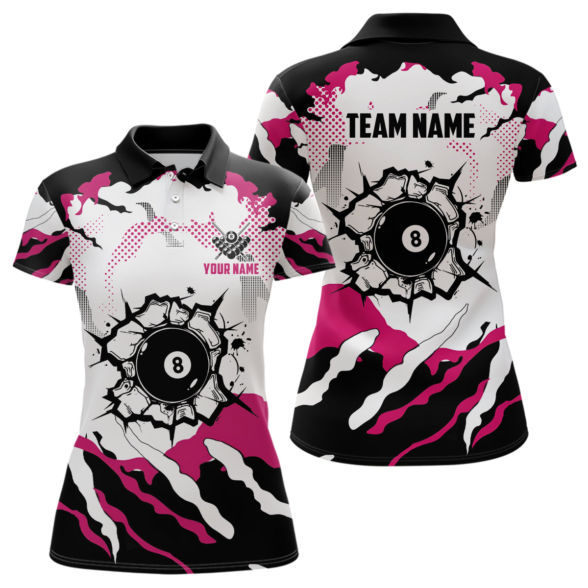 Funny Pink And White Camo 8 Ball Pool Break Custom Women Billiard Shirts, Billiard Jerseys Clothing TDM1834