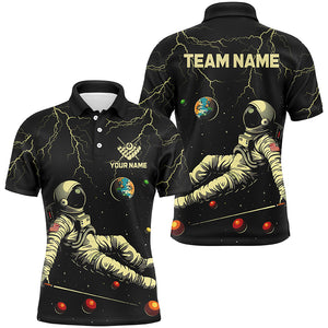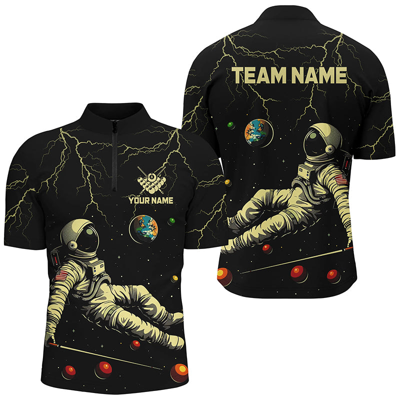 Personalized Black Astronaut Lightning Galaxy Billiard Shirts For Men, Funny Billiard Apparel TDM2029