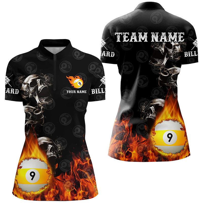 Personalized 9 Ball Pool Skull On Fire Billiard Shirts For Women, Funny 3D Printed Billiard Jerseys TDM2307