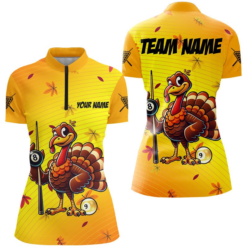 Yellow Funny Turkey Women Billiard Shirts Custom Thanksgiving Shirt For Pool Lover, Billiard Jerseys TDM2753