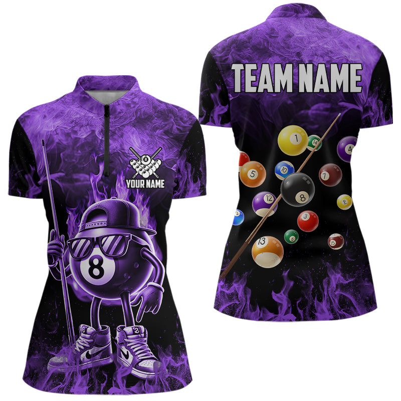 Personalized Purple Funny 8 Ball Pool Flame Women'S Billiard Shirts, Billiard Team Shirts Pool Jerseys TDM3782