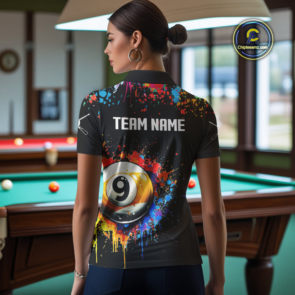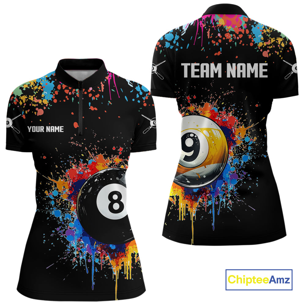 Funny 8&9 Ball Pool Colorful Paint Splash Billiard Shirt For Women Custom Billiard Team Jerseys TDM4295