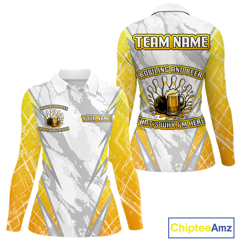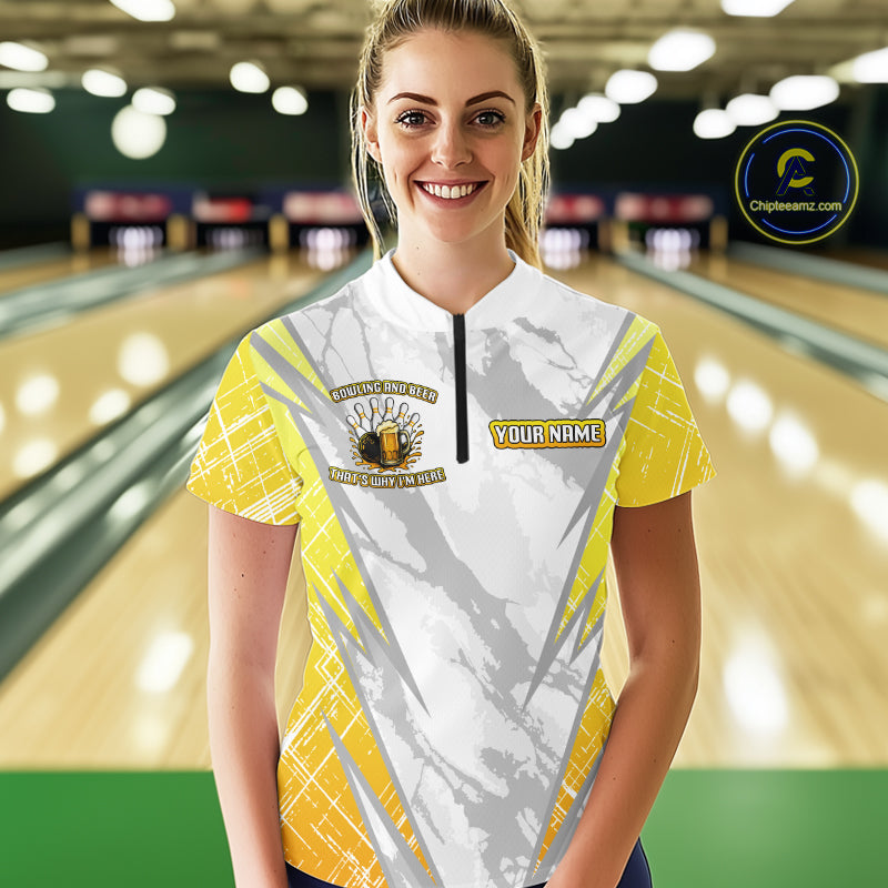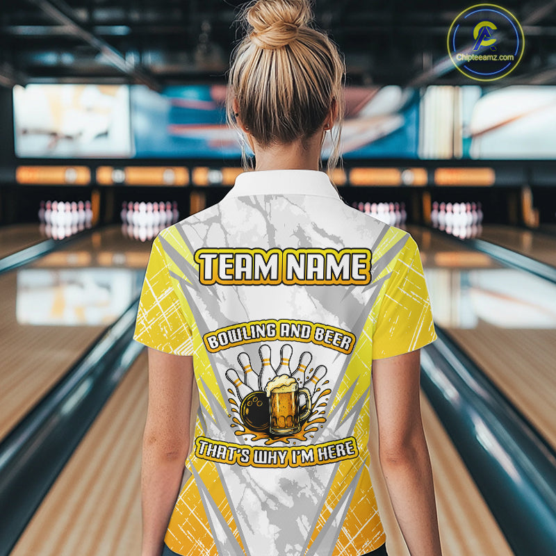 Bowling and beer That's why I'm here Funny Women Bowling Shirts Custom Team Bowling Jerseys NQS10134