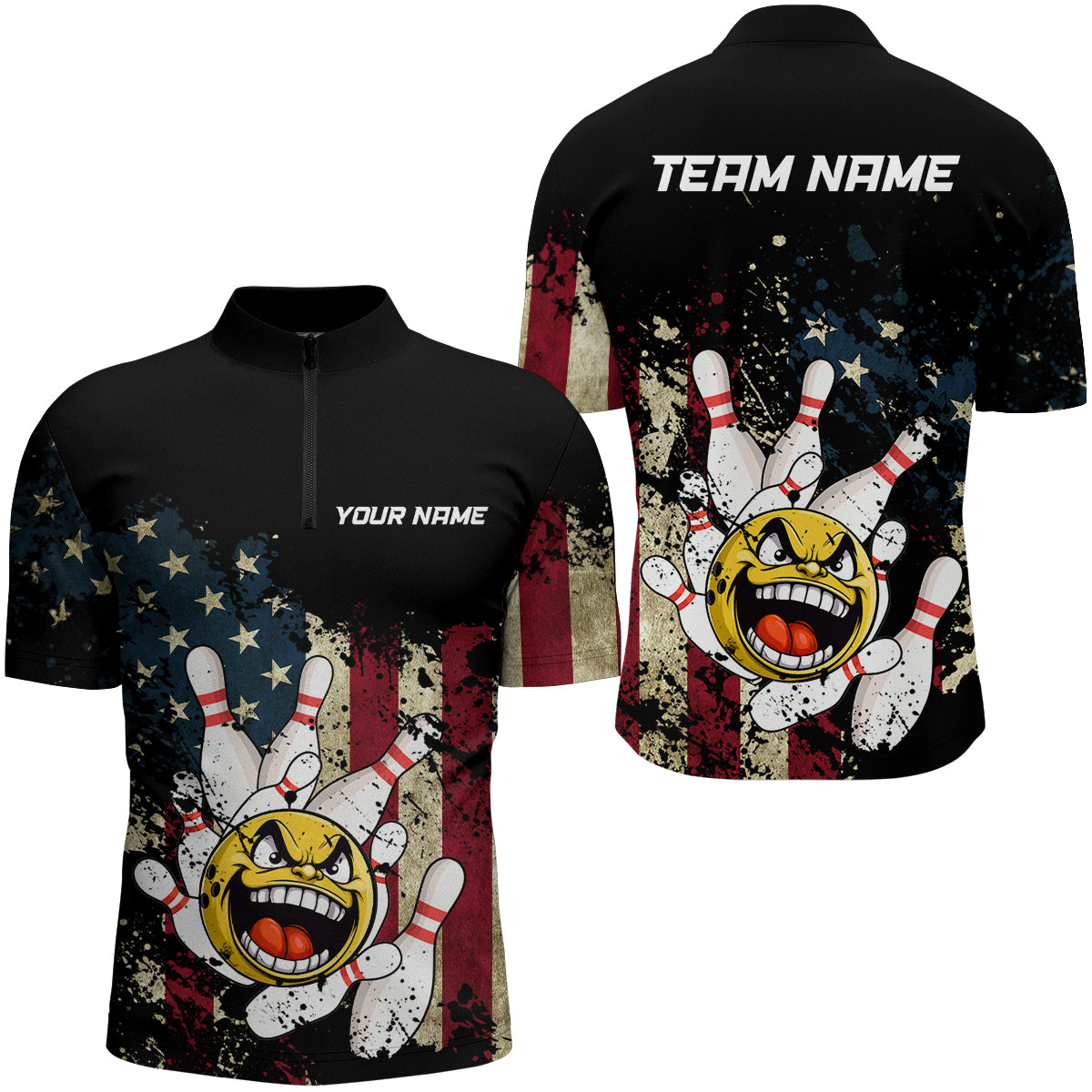 Custom American Bowling Shirt Men Funny Bowling Jersey Team Bowling 1/4 Zip Shirt BDT232