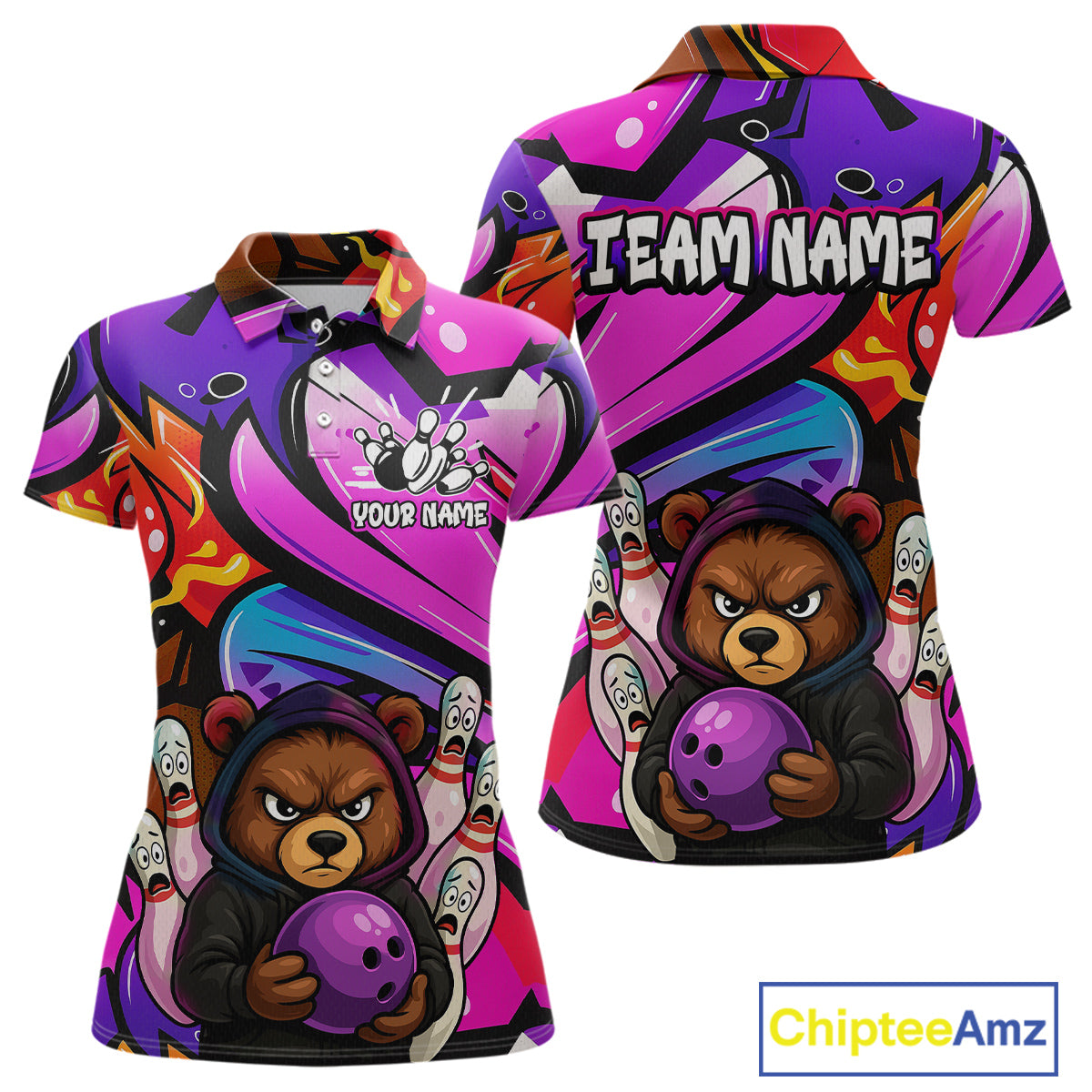 Custom Funny Bear Bowling Women Bowling Shirt Polo & Quarter-Zip Bowling Team Jerseys HNT84