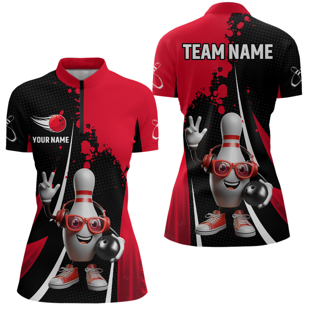 Custom Funny Bowling Shirts for Women Music Bowling Team Jersey Quarter Zip League QZT478
