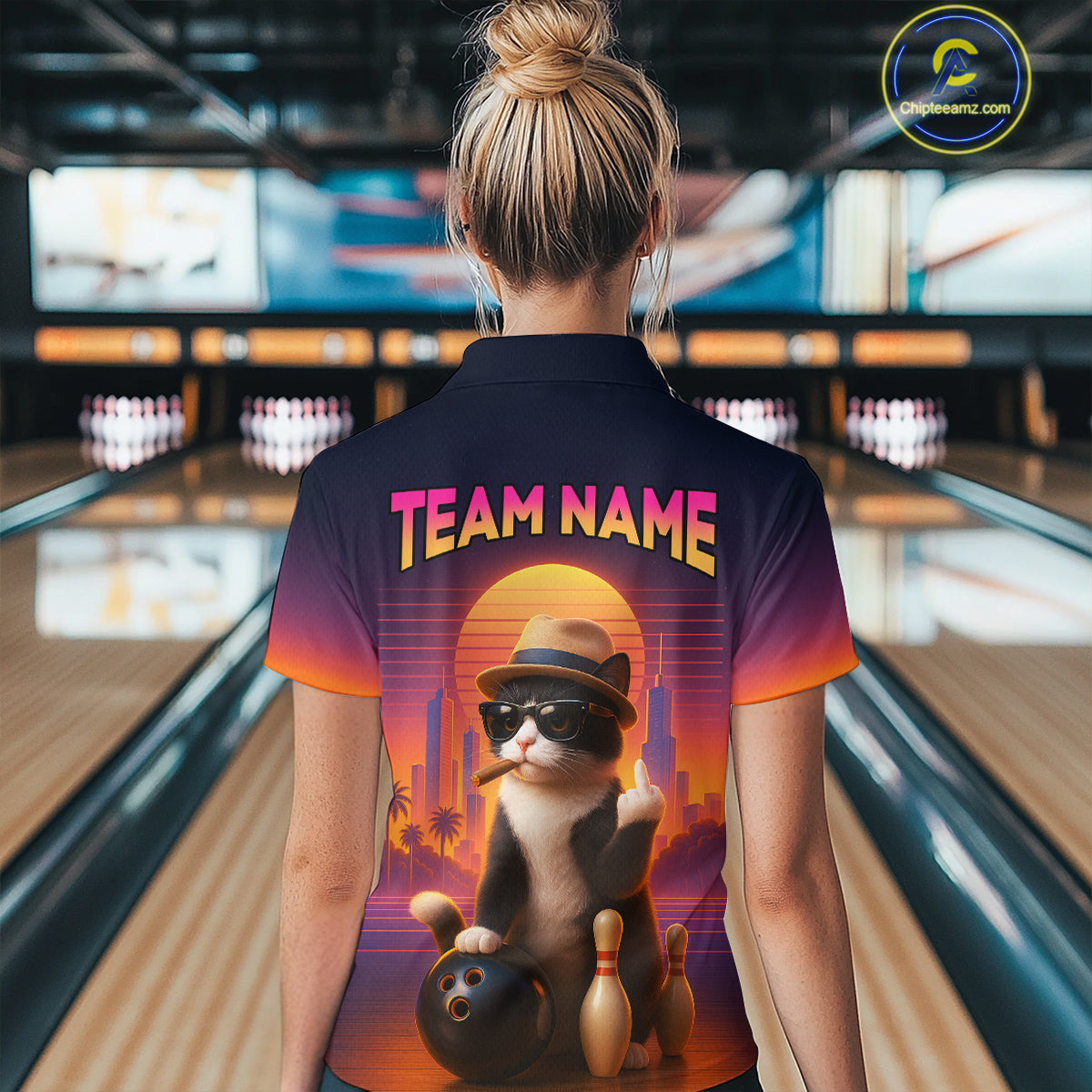 Custom Funny Cat Bowling Jersey for Women Bowling Uniform Polo & 1/4 Zip Bowling Team Shirts HNT114