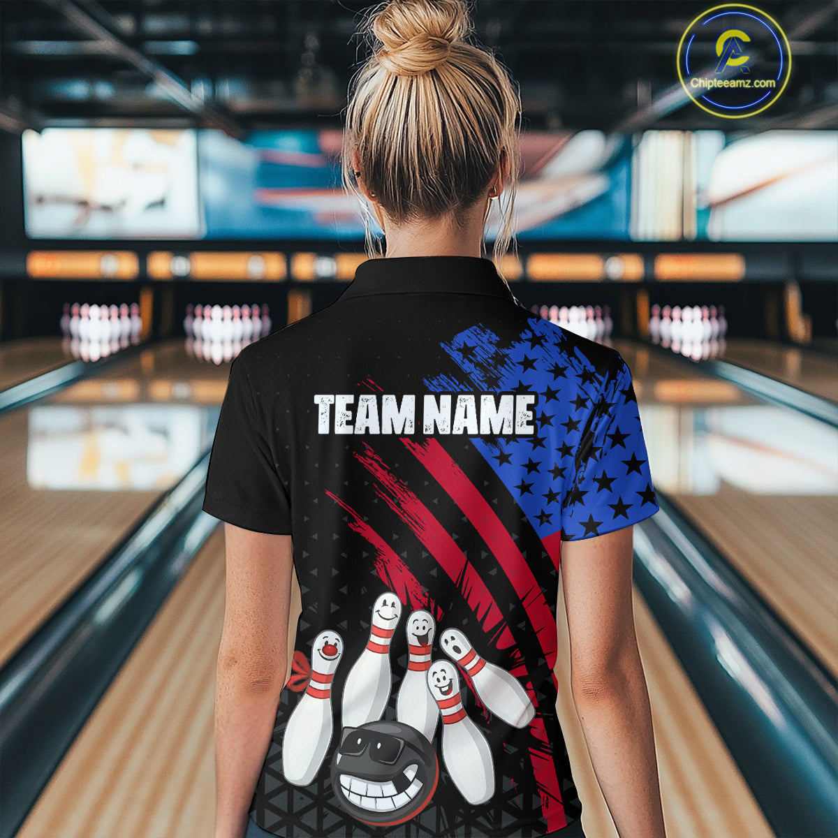 Custom Funny US Flag Bowling Jersey for Women Bowling Uniform Polo & 1/4 Zip Bowling Team Shirts HNT126