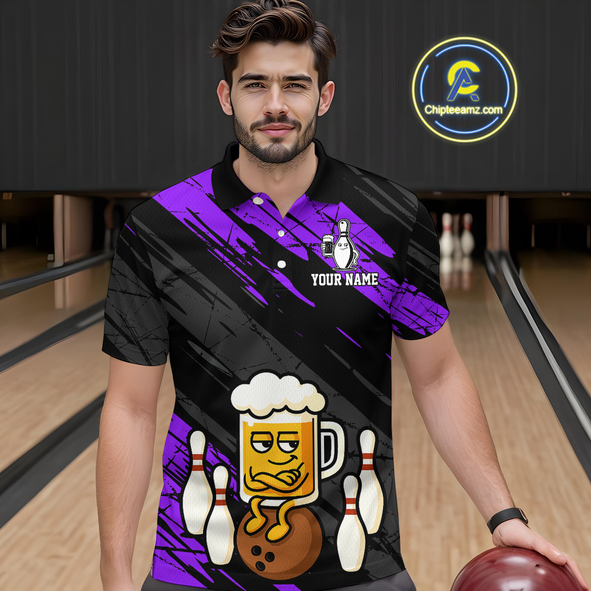 Custom Purple Funny Beer Bowling Jersey for Men Bowling Uniform Polo & 1/4 Zip Bowling Team Shirts HNT107