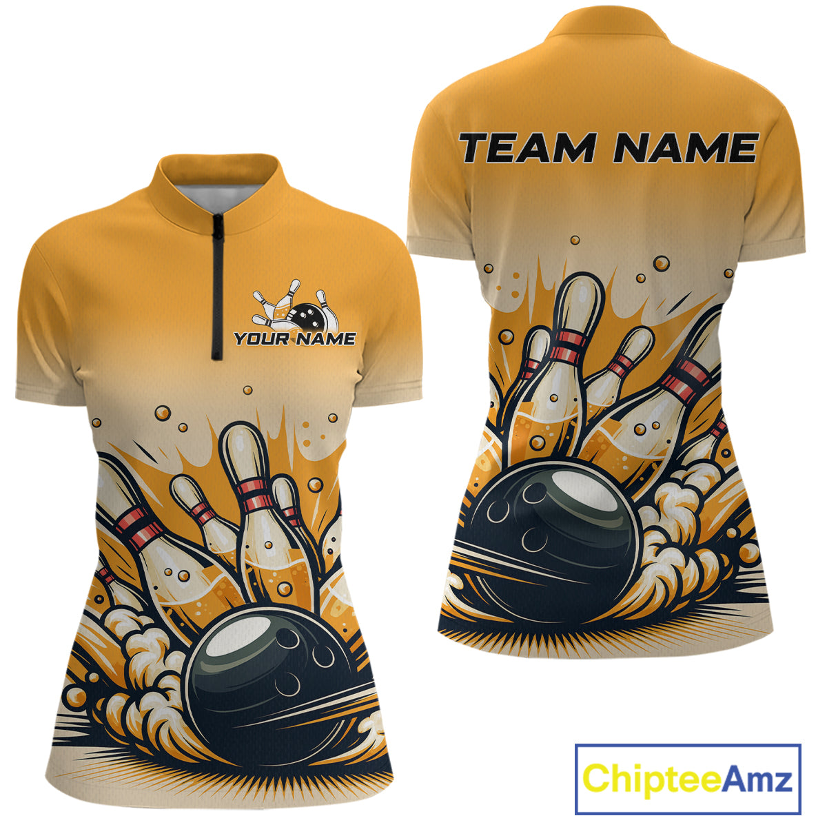 Funny Beer Bowling Jersey for Women Custom Bowling Uniform Polo & 1/4 Zip Team Bowling Shirts HNT118