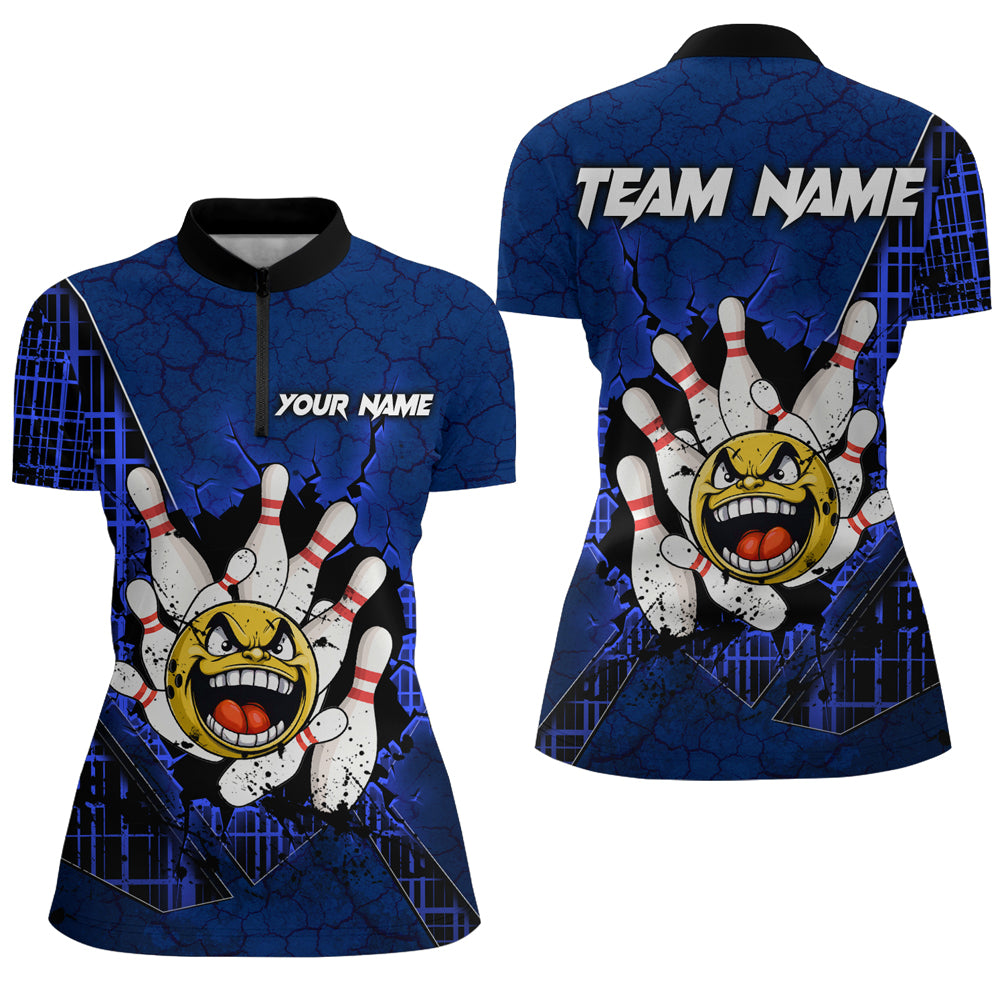 Funny Blue Bowling Quarter-Zip Shirts Men Women Custom Bowling Team Jersey Unisex Bowler Gift BDT489