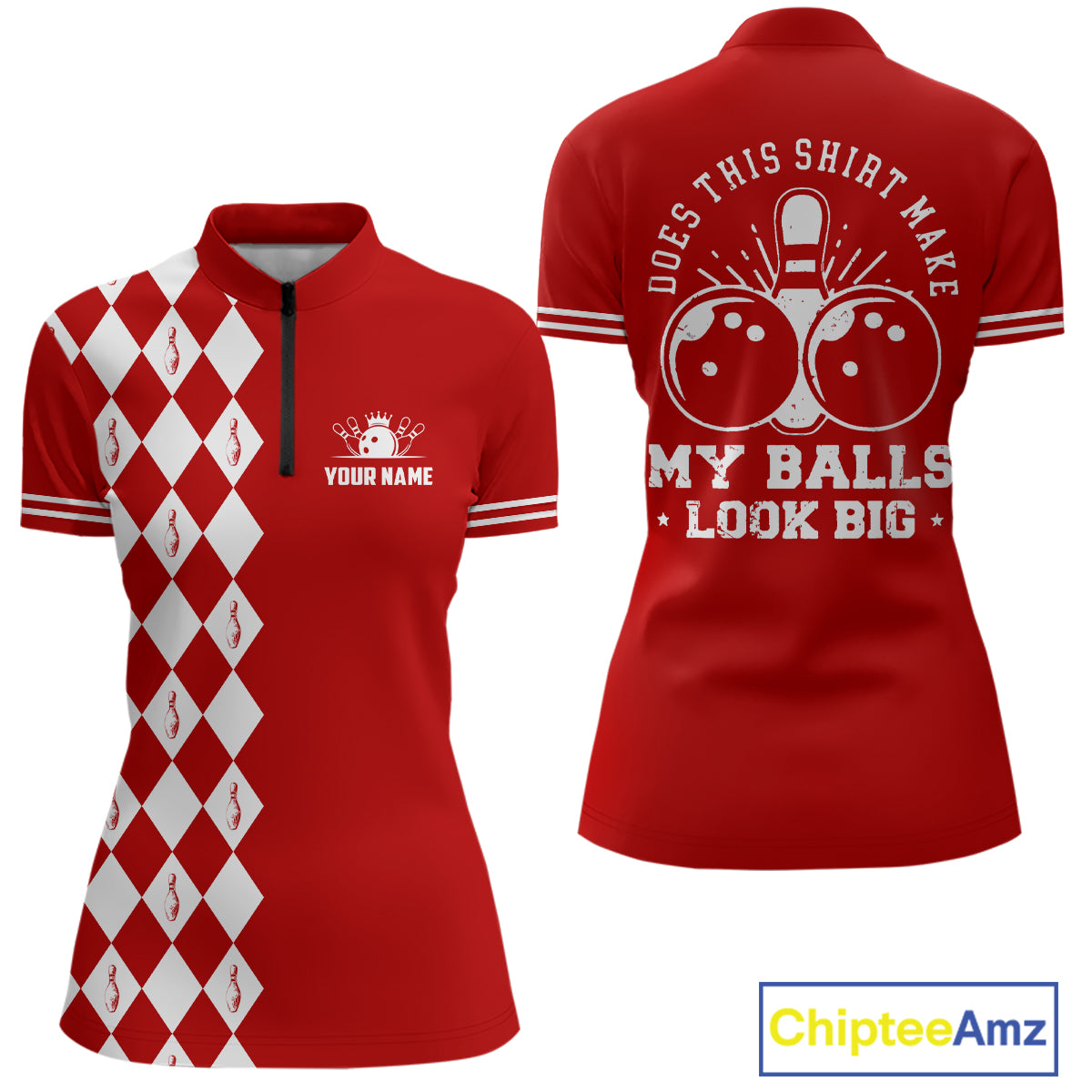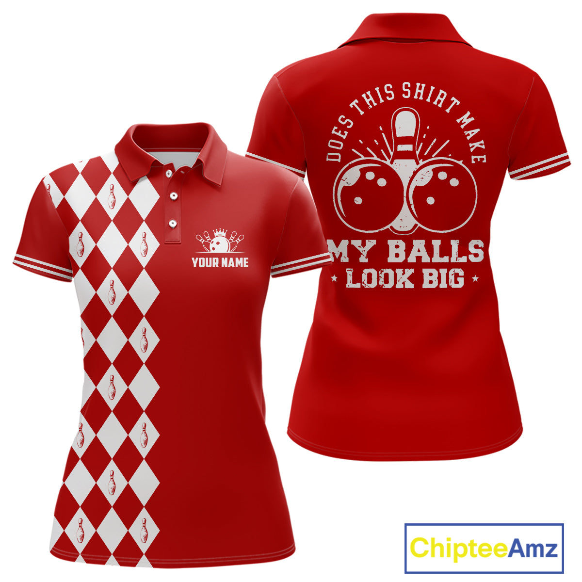 Funny red and white argyle retro Women Bowling Shirts Custom Does this shirt make my balls look big NQS10611