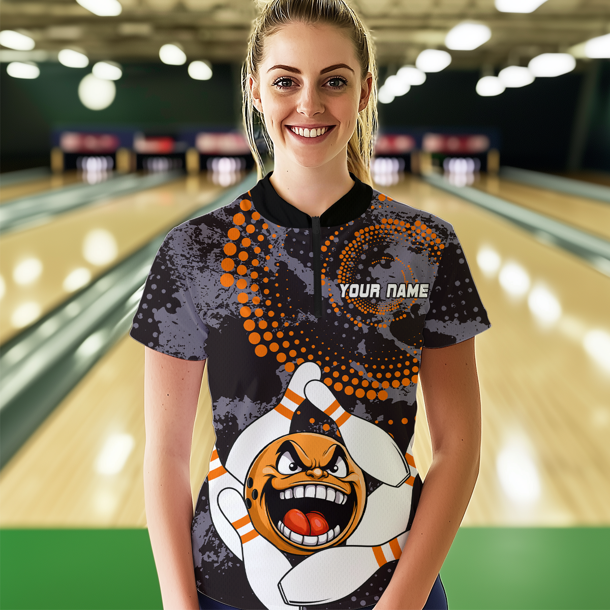 Orange Camo Bowling Shirt Funny Bowling Team Jersey for Women Quarter-Zip Bowling Shirt QZT255