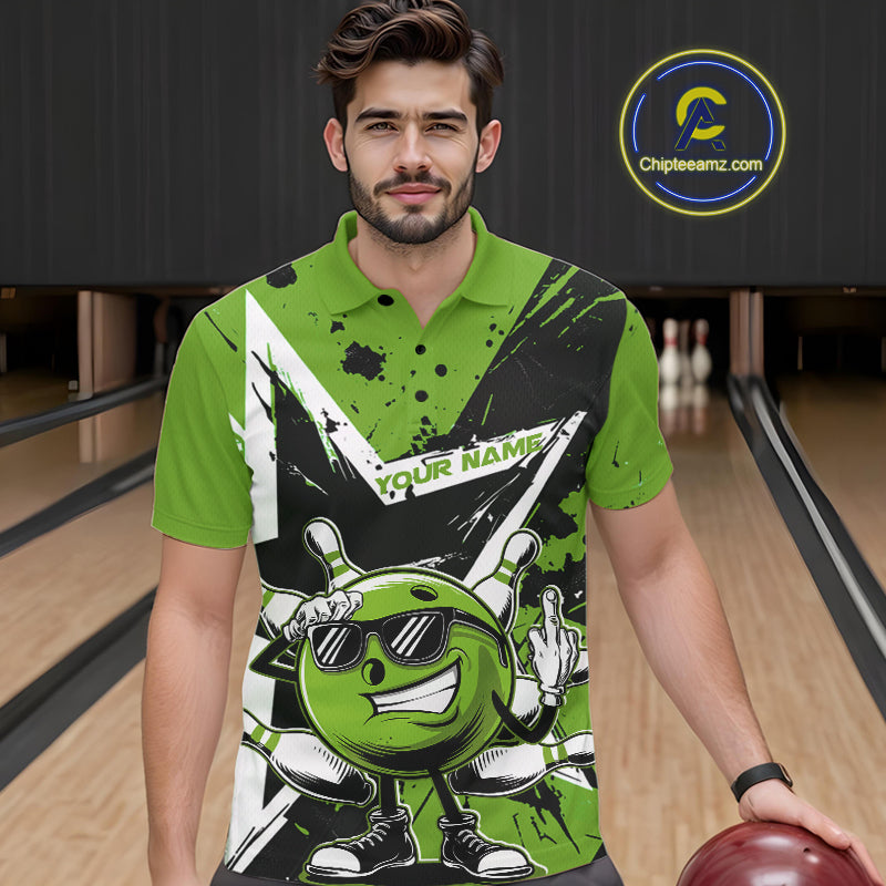 Custom Black And Green Star Funny Bowling Polo Shirts For Men, Bowling Tournament Shirt IPHW9360