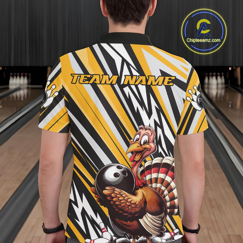 Custom Yellow Funny Thanksgiving Turkey Bowling Team Men Polo Shirts, Bowling Jerseys IPHW9720